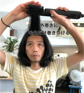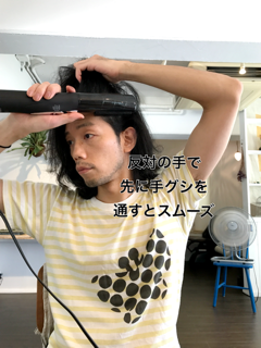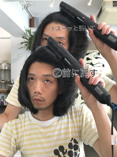 後ろへ動かす。こうすることで髪の毛の